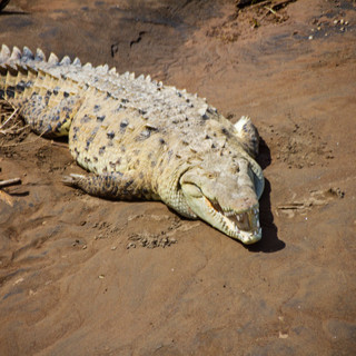 On the way, we stopped at the "famous" Rio Tarcoles Crocodile Bridge. Pretty much, you park your car on one end of the bridge, get out, walk down the sidewalk to the middle-ish of the bridge. Then you just stand there and watch 25+ gigantic nasty American Crocodiles lazing about and generally being fat bums :)